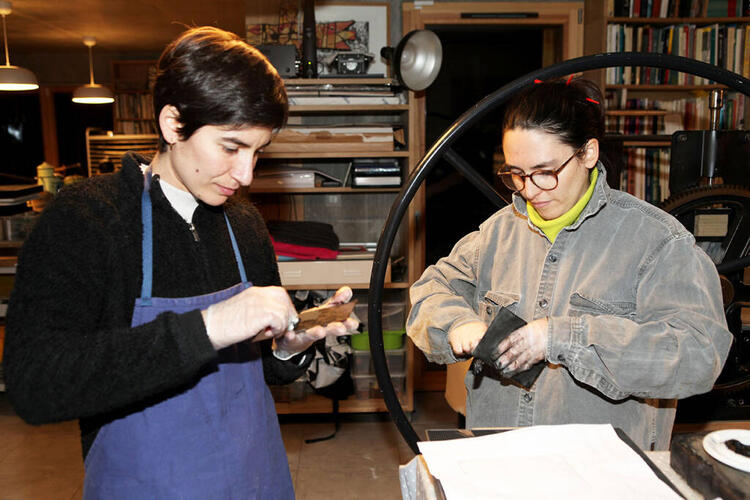 Die Techniken, die auf dem Programm der Radierkurse stehen, sind vielfältig: Trockenspitze, Radierung, Aquatinta, Zuckerradierung, weicher Lack, Strukturdruck, Gravoschaum, Holz- und Linolschnitt...