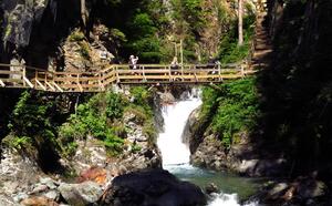 Dieser Ort kann über einen wunderschönen schattigen Pfad besichtigt werden, der an den Wänden hängt oder den Wildbach auf soliden Stegen überquert. Ein origineller und ungewöhnlicher Spaziergang, bei dem Sie die 5 Wasserfälle von Diosaz entdecken und zum Herzen der Schlucht gelangen.