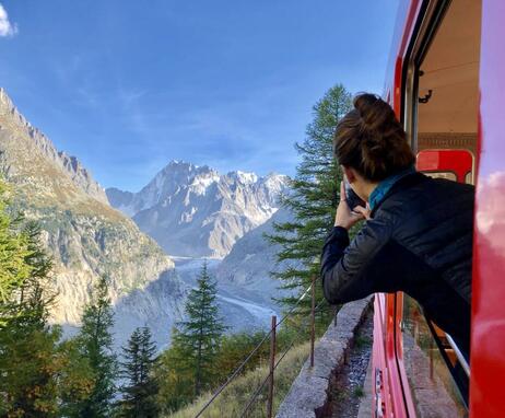Die berühmte kleine Zahnradbahn bringt Sie von Chamonix aus zu dem auf 1913 m gelegenen Montenvers. Von hier aus bietet sich Ihnen ein grandioses Panorama auf den Mer de Glace-Gletscher, Les Drus und Grandes Jorasses.