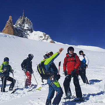 Die Temperatur ist zwar gesunken, die Aufregung jedoch gestiegen. Ein atemberaubender 360°-Blick auf das Mont-Blanc-Massiv und den höchsten Gipfel Europas. Wie in der Tonne bleibt Chamonix kosmopolitisch. Sie werden auf dem Gelände Skifahrern, Bergsteigern, aber auch einfachen Neugierigen aus der ganzen Welt begegnen. Mit der Hilfe Ihres Bergführers werden Sie sich in dem im Eis gebildeten Tunnel ausrüsten. Für einen sicheren Abstieg ist nämlich eine geeignete Ausrüstung erforderlich: Eispickel, Dva, Schaufelsonde, Helm, Klettergurt, Seil und Steigeisen sind sehr empfehlenswert.