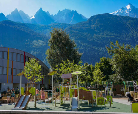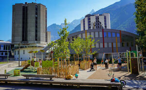 Der neue Spielplatz an der Promenade du Fori bietet Aktivitäten für Kinder von 1 bis 12 Jahren (Rutschen, Schaukeln, Klettern...) und eine komplette Landschaftsgestaltung mit öffentlichen Bänken.