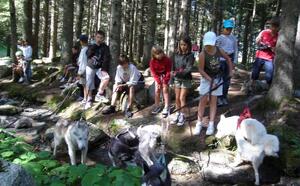 Spaziergang mit den Huskies und anschließend ein Bergabenteuer voller Spiele und Olympiaden.