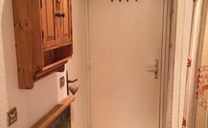 -Eingangsbereich mit Kleiderschrank, Bügelbrett und Bügeleisen, Staubsauger, viel Stauraum.