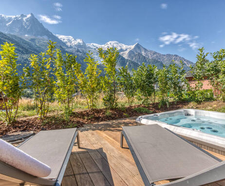 Die Chalets verfügen über ein modernes, nordisch inspiriertes Design und bieten einen beeindruckenden Blick auf den Mont Blanc und die Aiguille du Midi.