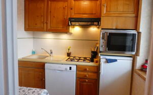 Separate Küche: 4 Kochstellen, Dunstabzugshaube, elektrischer Ofen, Mikrowelle, Geschirrspüler.