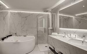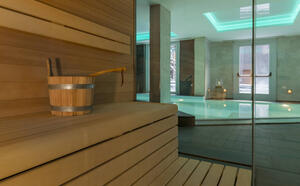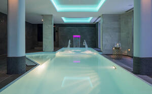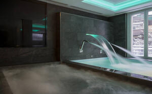 Das komplett renovierte und designte Spa des Grand Hôtel des Alpes liegt gegenüber dem Mont Blanc und am Flussufer: Hallenbad, Jacuzzi, Sauna, Hammam und Salzwand.