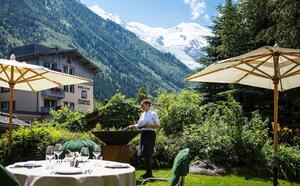 Hotel ***** in Chamonix mont Blanc, dieses echte Hameau in unmittelbarer Nähe des Zentrums, das seit 1903 von der Familie Carrier geführt wird, ist eine Institution für die Kunst, Gäste in den Bergen zu empfangen.