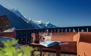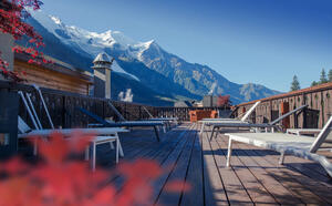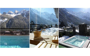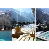 Unseren entspannenden SPA-Bereich im 6. Stock des Hotels mit einem 360°-Panoramablick auf das Mont-Blanc-Tal: Terrasse, beheizter Außenpool und Jacuzzi, zwei Saunen, Hammam, Sinnesdusche, zwei Pflegekabinen, Entspannungsraum und Außenbar.