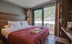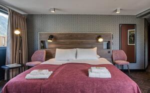 La pointe Isabelle hat 72 geräumige und komfortable Zimmer, die meisten mit Balkon und Blick auf den Mont-Blanc oder die Berge von Chamonix.