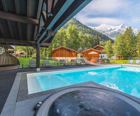 Im Winter wie im Sommer bietet Les Aiglons auch einen ganzjährig geöffneten Außenpool mit einer Terrasse, die eine atemberaubende Aussicht bietet.