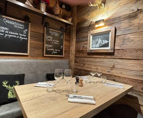 In einem typischen rustikalen Chalet-Rahmen, entdecken Sie unsere raffinierte Küche und unsere savoyischen Spezialitäten. Sonnenterrasse mit Blick auf den Mont Blanc