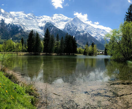Der in der Talsohle gelegene Lac des Gaillands, nur wenige Kilometer von Chamonix entfernt, ist ideal, um eine kleine Pause mit Blick auf den Mont-Blanc einzulegen.
