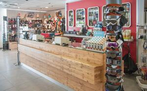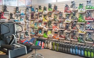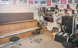 -Reparaturwerkstatt, ausgestattet mit der neuesten Skipflegemaschine Winter Steiger.