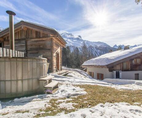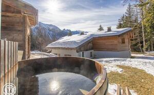 In an exceptional natural setting, facing Mont Blanc: a magnificent, small, detached chalet (with a Scandinavian spa), nestled at 1380m altitude in a secluded hamlet just 15 minutes from Chamonix. Skiing is 2km away in winter (Le Tour), and the train station and bus stop are 900m away. A natural environment, ideal for hiking in all seasons.