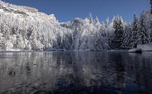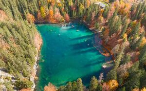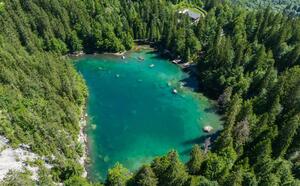 Dank der außergewöhnlichen Transparenz des Wassers kann man am Grund des Sees eine Ansammlung von Bäumen und Pflanzen beobachten.