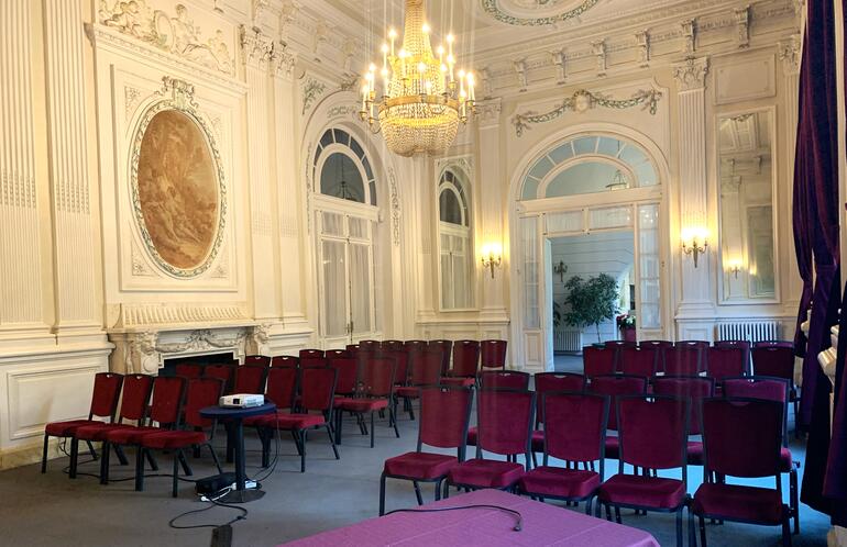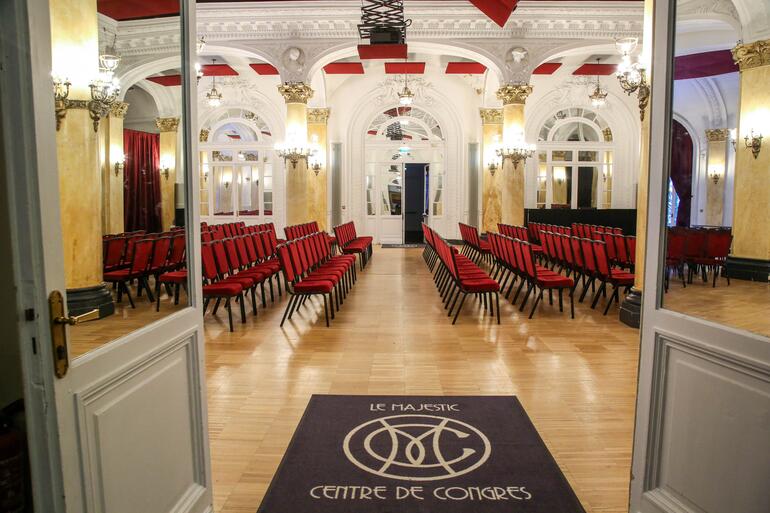 1 patience croisée motorisée avec rideau d’avant-scène velours, fermeture à la grecque