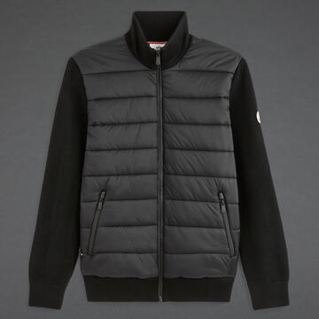 On y retrouve une parka longue noire imperméable, en matière respirante et composée d’une thermo rétention (169.99€) ainsi qu’un gilet doudoune à capuche aux manches en maille et au corps matelassé (99,99€)