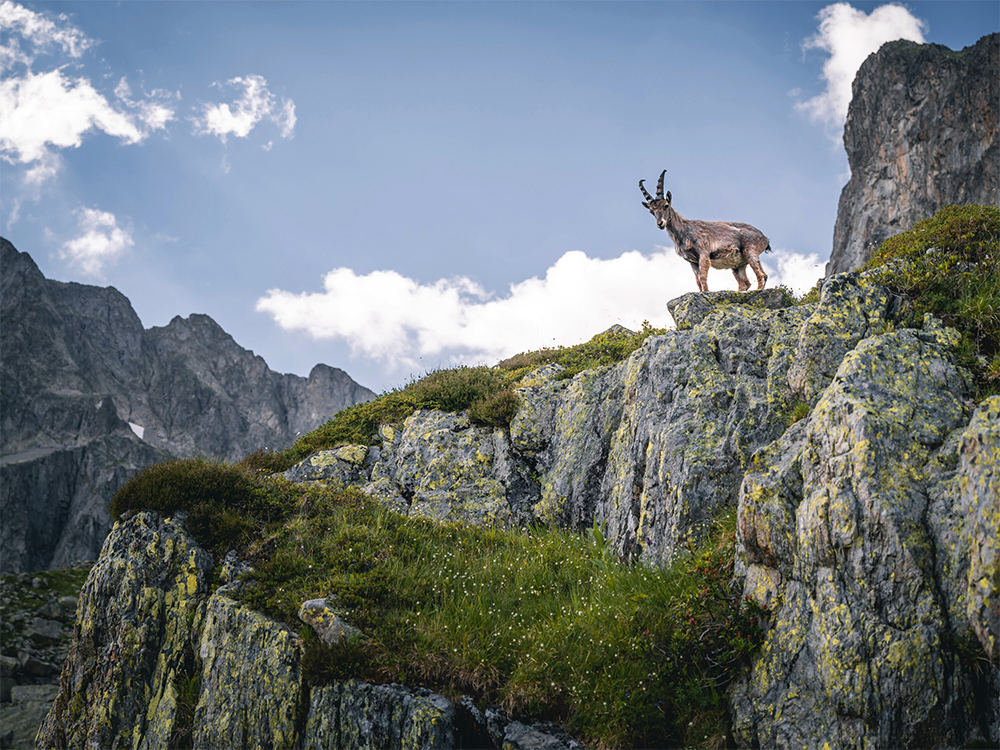 La faune locale fait partie intégrante de l’expérience. En marchant silencieusement, il est possible d’apercevoir des chamois dévalant les pentes rocheuses ou encore des aigles planant au-dessus des crêtes. Les marmottes, souvent visibles aux abords des sentiers, sont particulièrement appréciées des plus jeunes.