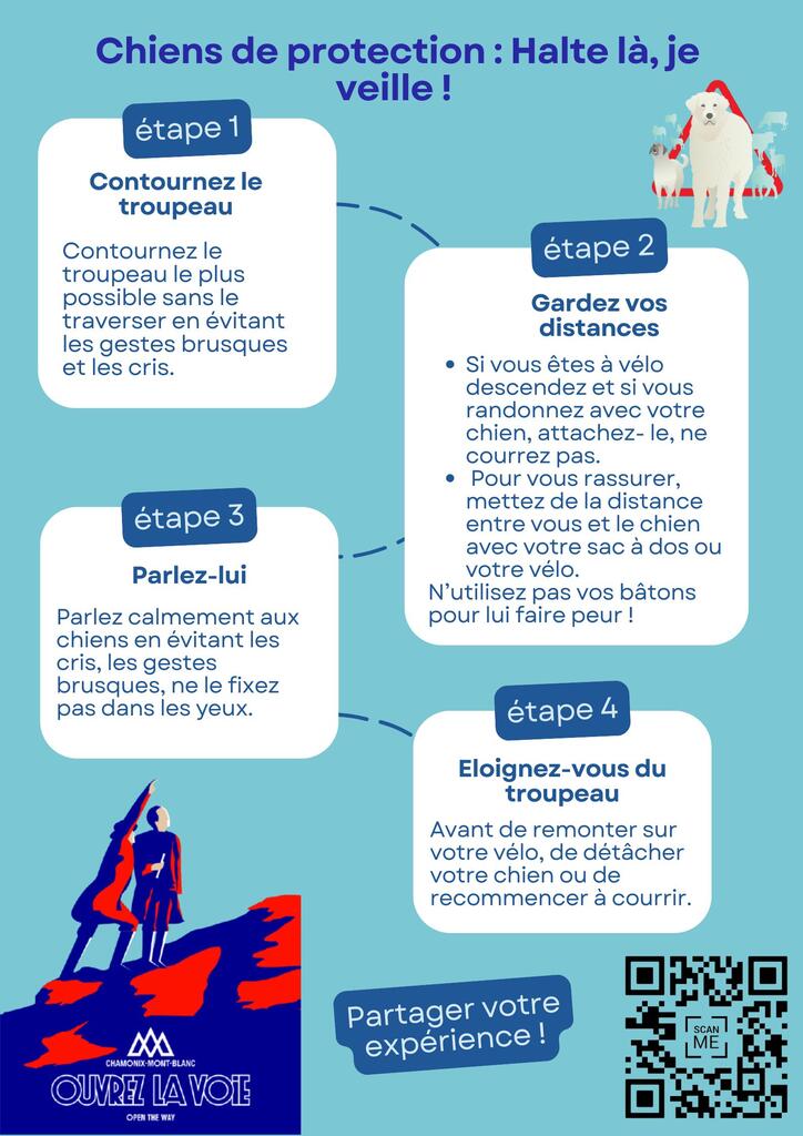 Des troupeaux sont présents dans nos alpages, et dans certains cas, pour les protéger des prédateurs, des chiens de protection montent la garde. Ils ne sont pas agressifs envers les randonneurs ni les chiens tenus en laisse, mais il faut éviter de les surprendre ou de leur faire peur.