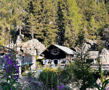 Die Buvette liegt an einem Wanderweg und am Ausgang des Klettersteigs. Sie ist der ideale Ort für einen Familienausflug oder für Outdoor-Fans.