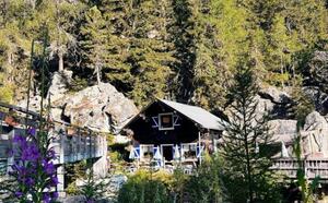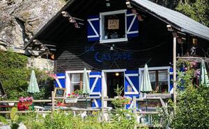 Die an ihren blauen Fensterläden erkennbare Buvette ist ein einzigartiger Ort mit Blick auf den Wasserfall von Bérard.