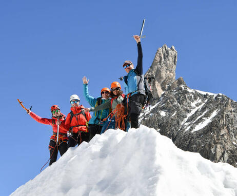 - Erforderliches Niveau: Sie sollten über eine gute körperliche Verfassung verfügen und nicht schwindelanfällig sein. Sie müssen nämlich den Grat der Aiguille du Midi hinuntersteigen, der sich als beeindruckend erweisen kann, wenn Sie dazu neigen. Sie werden dann von 2 Personen pro Bergführer angeseilt.