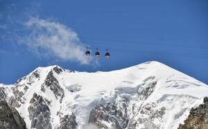 Rückfahrt zur Aiguille du Midi mit der Panoramic Mont Blanc-Gondelbahn, Abstieg nach Chamonix mit der Seilbahn.