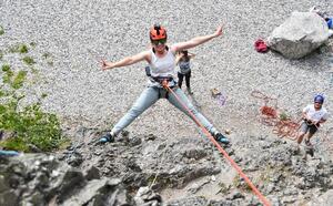 Sie werden von einem Bergführer betreut und können sich auf den verschiedenen Routen bewegen, die dieser Felsen bietet.