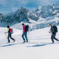 Dank unseres täglichen Programms an Halbtagesausflügen, die für die ganze Familie geeignet sind, können Sie die außergewöhnliche Schönheit der Landschaften des Tals von Chamonix in der einzigartigen Umgebung des Mont-Blanc-Massivs genießen. Wir organisieren auch Schneeschuhwanderungen auf Gletschern im Hochgebirge sowie ganztägige Schneeschuhwanderungen.