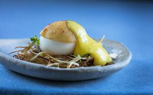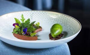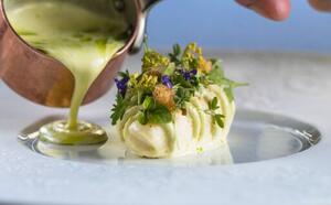 Der Chefkoch Damien Leveau ist anspruchsvoll, leidenschaftlich und wagemutig und bietet eine erfinderische Küche, die die Qualität der Produkte hervorhebt, die er sorgfältig im Gemüsegarten des Hameau und bei seinen Stammproduzenten auswählt.