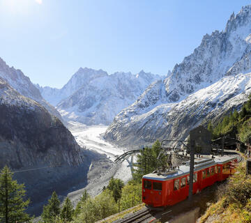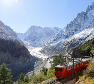 Buchen Sie schnell Ihre Fahrkarte für diese berühmte Zahnradbahn des Chamonix-Mont-Blanc-Tals. Sie werden eine einmalige Fahrt erleben, mit einer unglaublichen Aussicht auf den größten Gletscher Frankreichs. Ein unvergessliches Erlebnis!