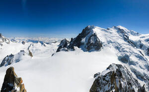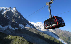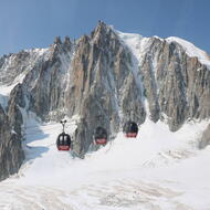 Für ein vollständiges Erlebnis fliegen Sie mit der Gondelbahn "Panoramic Mont-Blanc" über den Glacier du Géant bis nach Italien (nur im Sommer gegen Aufpreis).