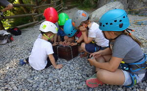 Die Einführungskurse für Kinder werden in Form einer vertikalen Schatzsuche durchgeführt, die viel Spaß macht: Klettern Sie, um Gegenstände zu fangen und die Truhe zu öffnen, ein unvergessliches Erlebnis!