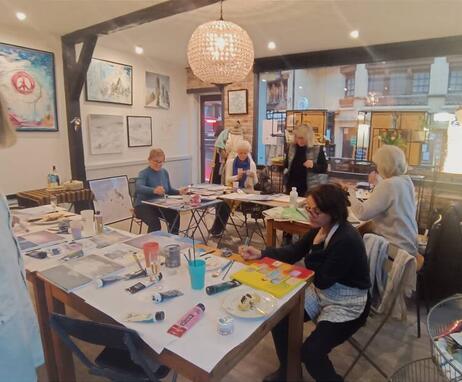 Acrylmalerei auf Leinwand. Malen auf überarbeiteten Postern. Abstrakte Malerei. Pop-Street Art. Dekorative Malerei auf Kieselsteinen und Schieferplatten. Aquarell von Bergen und Landschaften, Skizzen, Spaziergänge. Spaziergänge zur Einführung in die Komposition. Aperitif-Malerei (Wein und Käse)... Und vieles mehr...