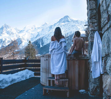 Nach einem Tag, an dem Sie die Berge erkundet haben, ist es an der Zeit, sich zu entspannen. Das Tal von Chamonix bietet zahlreiche Möglichkeiten, diese Momente der Zweisamkeit zu genießen. Viele Hotels und Wellnesszentren bieten speziell für die Entspannung konzipierte Bereiche an. Geben Sie zu, dass das Eintauchen in 38 °C warmes Wasser nach einem Tag an der frischen Luft eine hervorragende Möglichkeit ist, sich wiederzufinden, aber vor allem, um einen wohlverdienten Moment der Entspannung zu genießen!