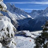 Schöne gespurte und markierte Rundwanderung mit Blick auf das Mont-Blanc-Massiv am Gipfel des Sessellifts Index auf 2396m.