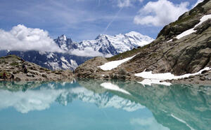 Dieser See im Naturschutzgebiet, eingebettet in die Aiguilles Rouges, ist oft schneebedeckt und bietet einen schönen Ausblick auf die Aiguilles de Chamonix, des Drus und der Verte.
