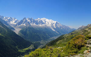 Aussichtspunkt mit Blick auf die Aiguilles du Massif du Mont Blanc.