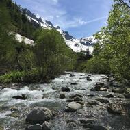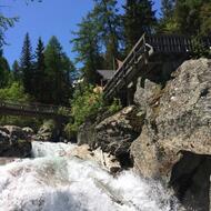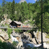 Sehr angenehme Wanderung entlang des Wildbachs L'Eau de Bérard, teilweise im Unterholz, Lärchenwald: Am Rand des Naturschutzgebietes des Vallon de Bérard. Ziel der Wanderung: Berghütte mit Imbiss und Schlafräumen.