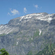 der Cascade de Bérard. Weiter geht es durch einen schönen Lärchenwald und durch eine tief eingeschnittene Schlucht auf das erste Plateau: La Fontaine Froide. Weiter oben überqueren Sie den Bach bei Pont de la Vordette (1528 m) und steigen einen felsigen Steilhang hinauf, der auf das zweite Plateau führt. Eine Reihe von Abflachungen führt zum Fuß des letzten Abhangs. Überqueren Sie den Eau de Bérard und erreichen Sie über einige Serpentinen die Hütte, die sich unter einem großen Stein befindet.