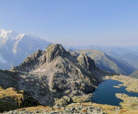 Der Lac Cornu ist eines der beliebtesten Ziele für Spaziergänger. Im See kann man angeln. Mit seiner kuriosen Form ist er in eine wilde und ruhige Umgebung eingebettet. Naturreservat Aiguille Rouges.