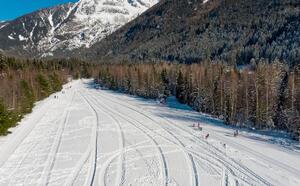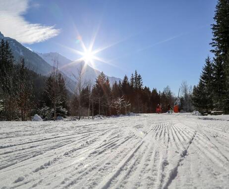 Chamonix liegt nur wenige Schritte vom Stadtzentrum entfernt und verfügt über ein nordisches Skigebiet von etwa 20 Kilometern Länge, das sowohl im Alternativ- als auch im Skating-Stil gespurt ist.