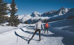 Wunderschönes Gebiet vor der Mont-Blanc-Kette: 2 Routen (gespurt, aber nicht gezeichnet - ausschließlich im Skating-Stil, nicht im klassischen Stil), die Schneefelder und Waldpassagen kombinieren. Eine Variante ist möglich: "Retour des fatigués" (Rückkehr der Müden).