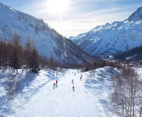 Am Fuße des Skigebiets Balme, abseits der erfahrenen Skifahrer: In La Vormaine ist alles für ein selbstbewusstes Vorankommen vorhanden.
