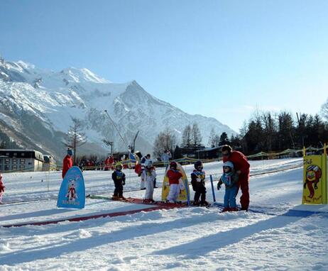 Am Fuss des Brévent in der Gemeinde Chamonix warten zwei Sessellifte und ein Rollband auf Neulinge und Kinder, die ihre ersten Kurven fahren. Künstliche Beschneiung und Kindergarten.