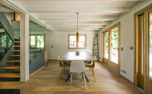 Der Essbereich und die Küche bieten Platz für 16 Gäste, einen Chefkoch und seinen Assistenten in einer warmen und funktionalen Atmosphäre.