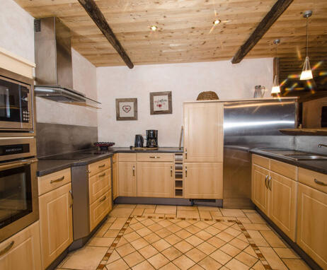 - Open kitchen equipped (dishwasher, oven, hood, fridge freezer, microwave, induction hob, coffee machine, kettle, raclette appliance)
