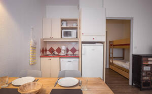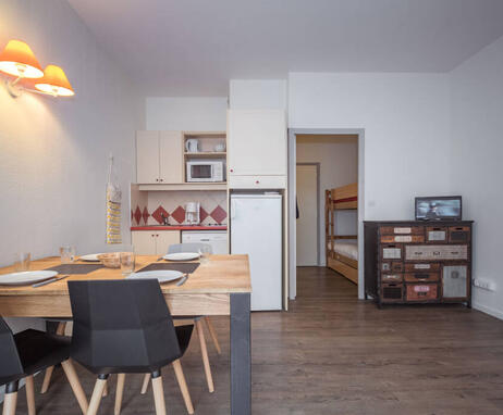 25sqm studio classified 2 stars, for 4 people located on the ground floor in Chamonix Sud at 350m from the pedestrian area of Chamonix and at 50 meters from the main ski bus stop.