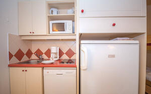 - Kitchen area (two ceramic hotplates, dishwasher, microwave and fridge, filter coffee machin)