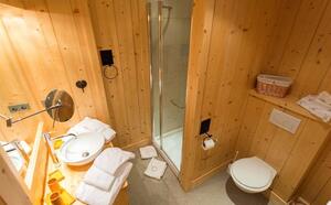 Auf 3 Ebenen, Doppelwohnzimmer von 70 m2 mit Kamin, ausgestattete Küche, große Terrasse von 100m2 und Balkone, Jacuzzi, Sauna, Skiraum mit Schuhheizung, 7 TV, Internet, Wifi.